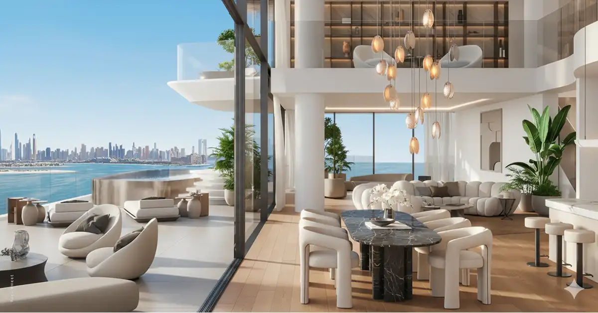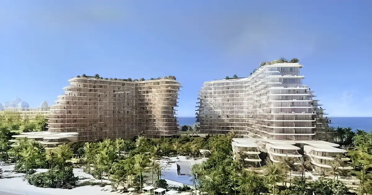 • The Beach Mansions: این عمارت‌های ۶ خوابه با الهام از طراحی‌های دریایی، دارای پارکینگ زیرزمینی، آسانسور خصوصی و دسترسی مستقیم به ساحل هستند و اوج زندگی لوکس در دبی را به نمایش می‌گذارند.